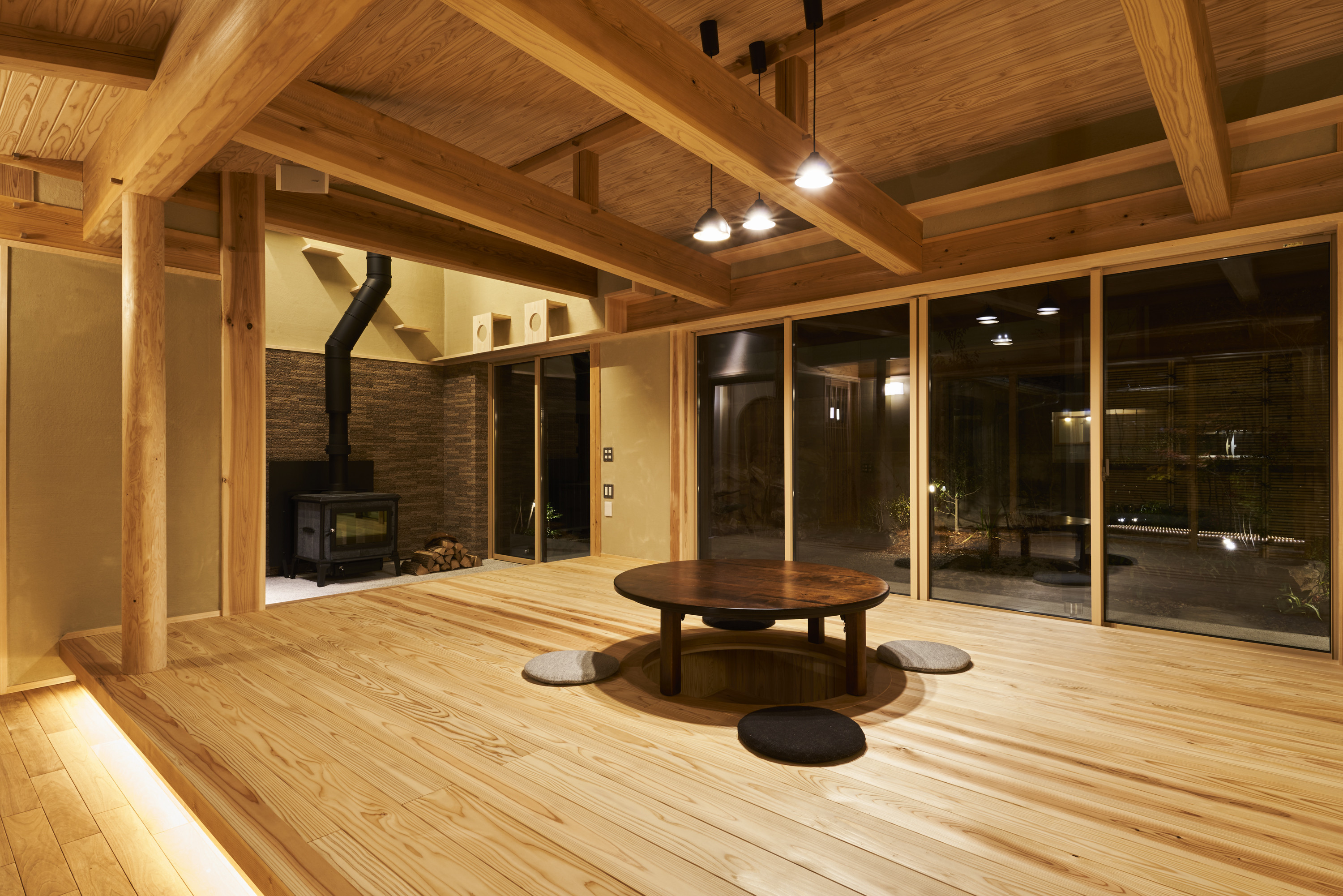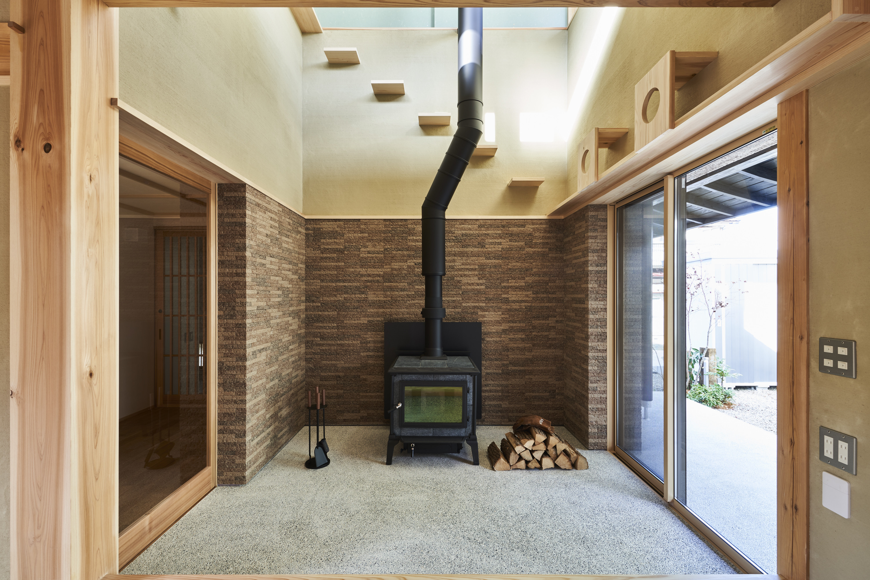 また、リビングの土間には薪ストーブが置かれており、そのパワフルな暖かさはもちろん、