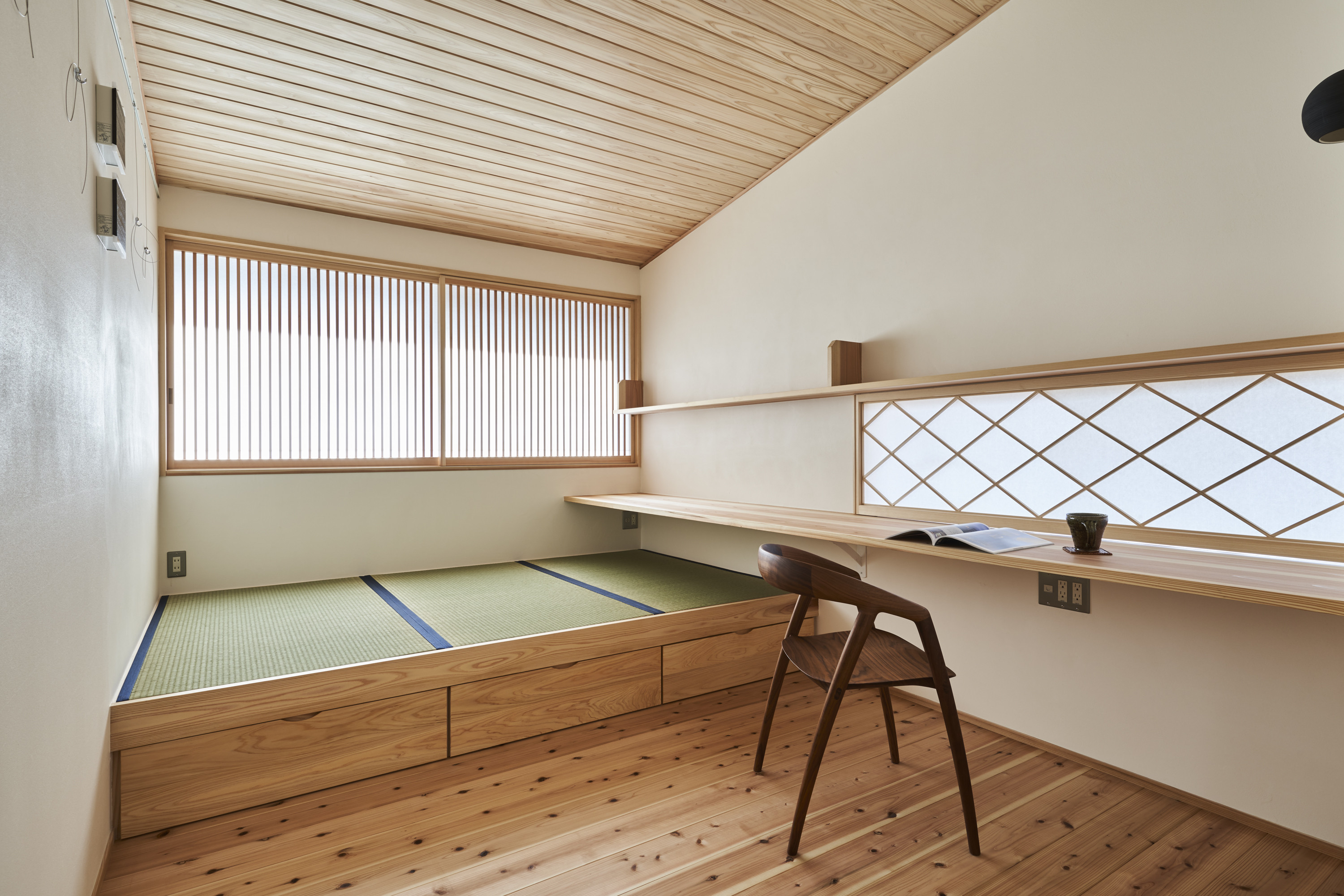 2階には書斎スペースと寝室があり、