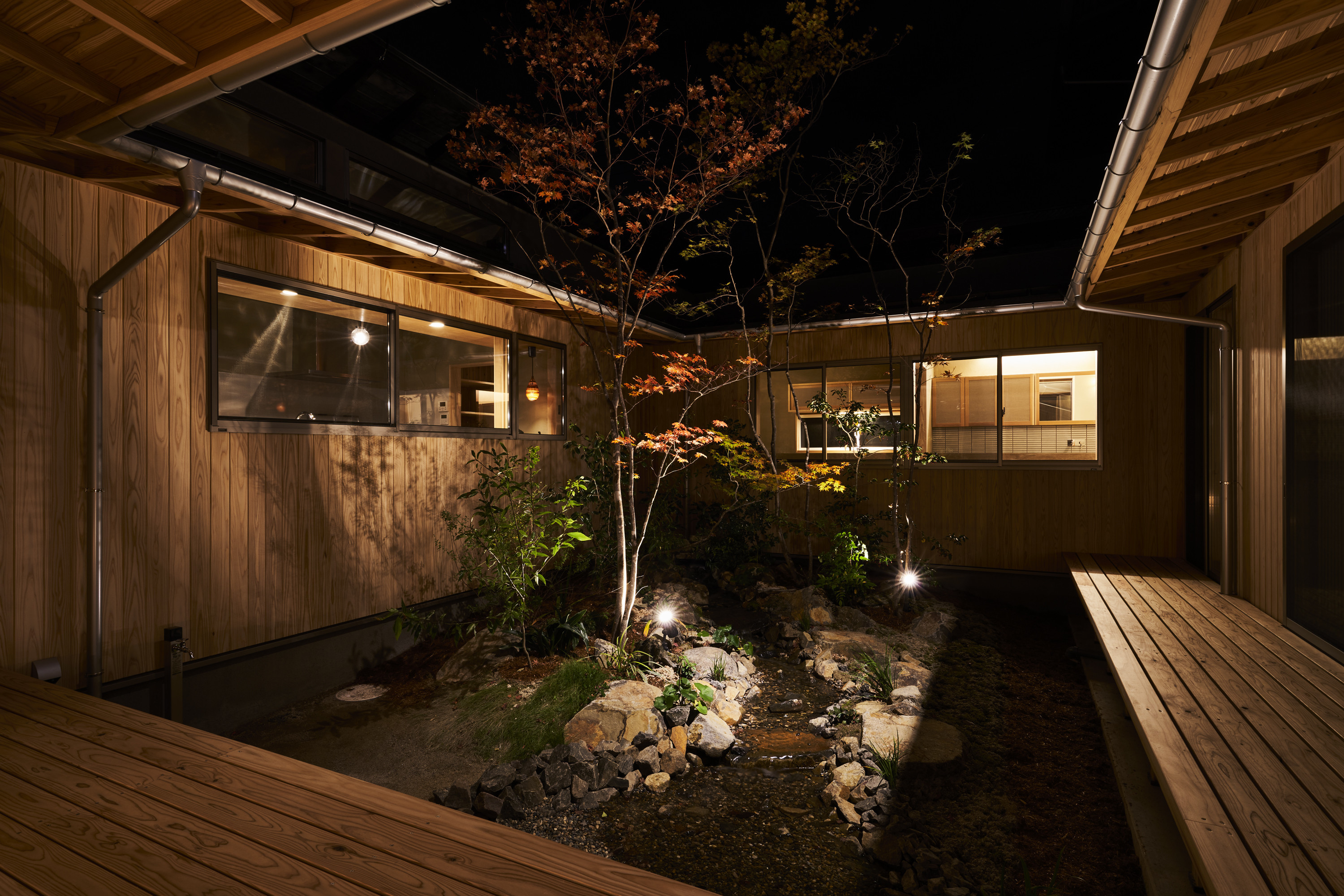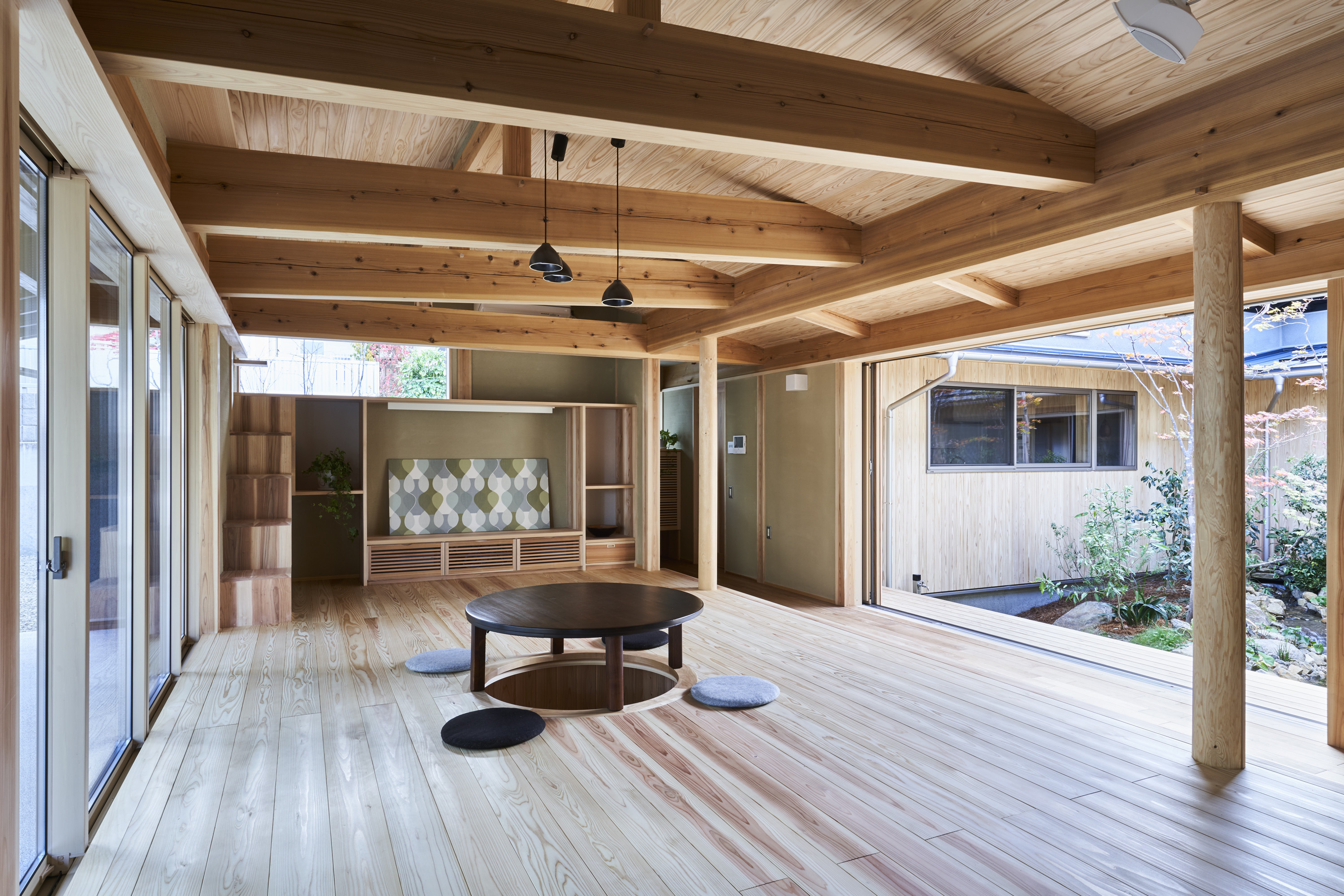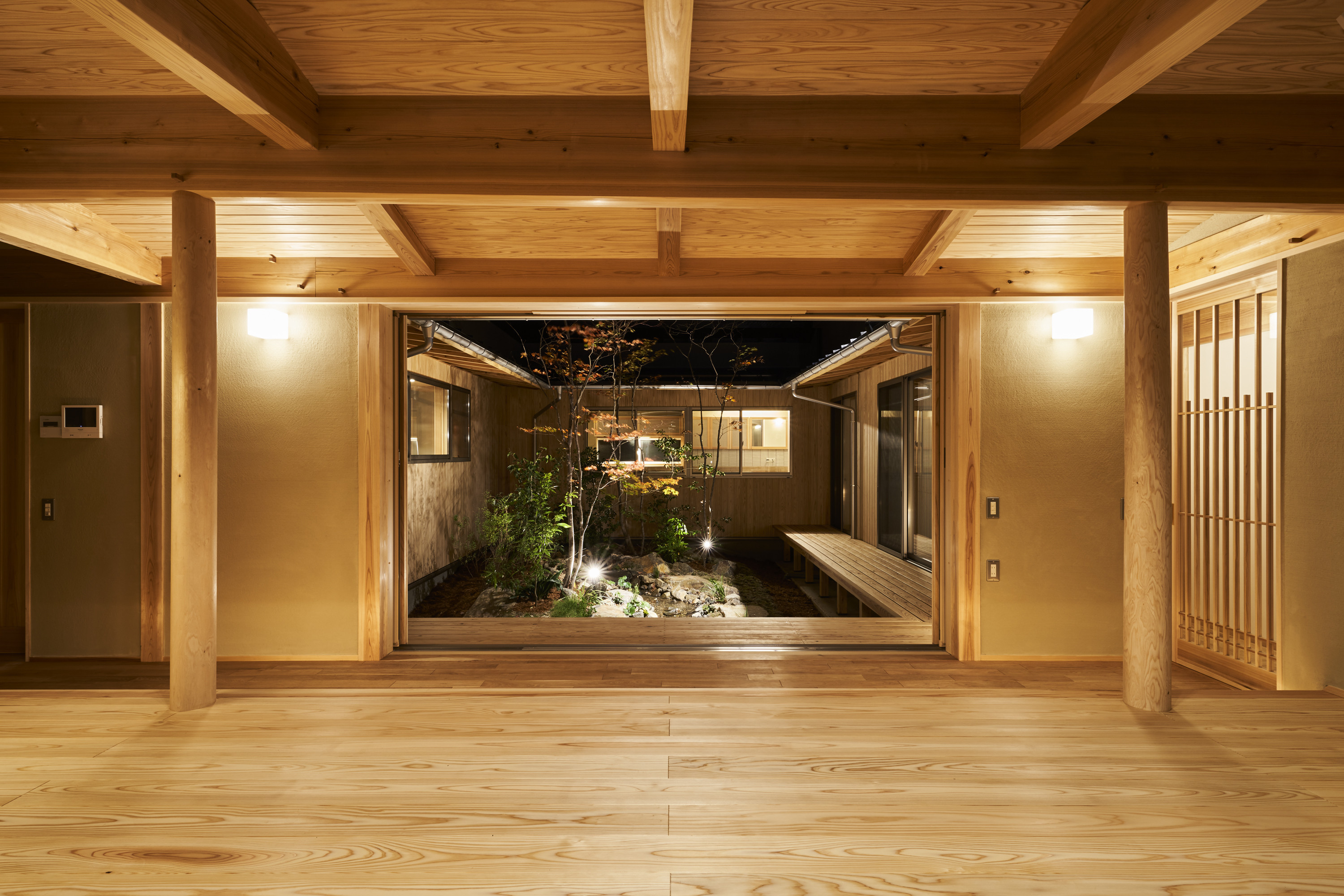 そこから、大開口の窓を開け中庭を臨めば、
