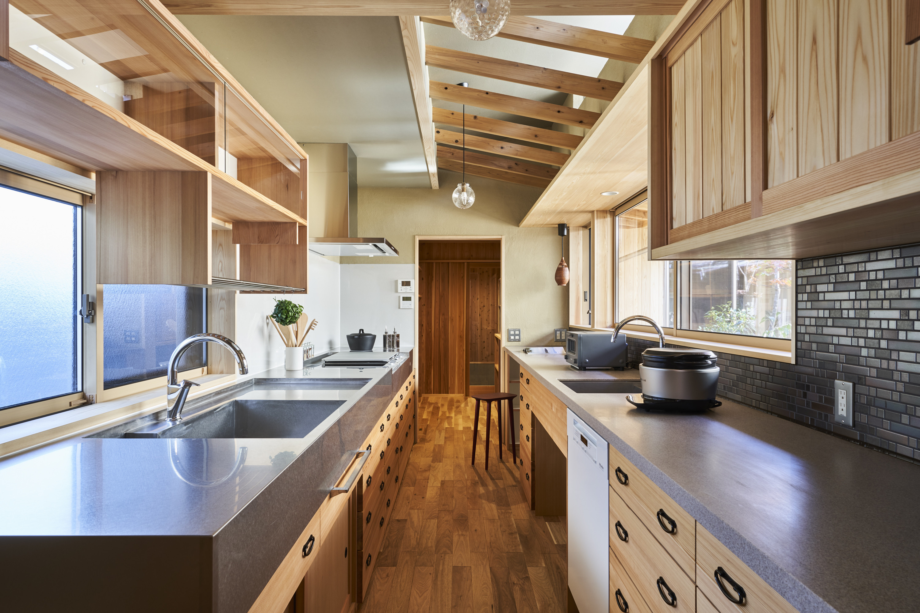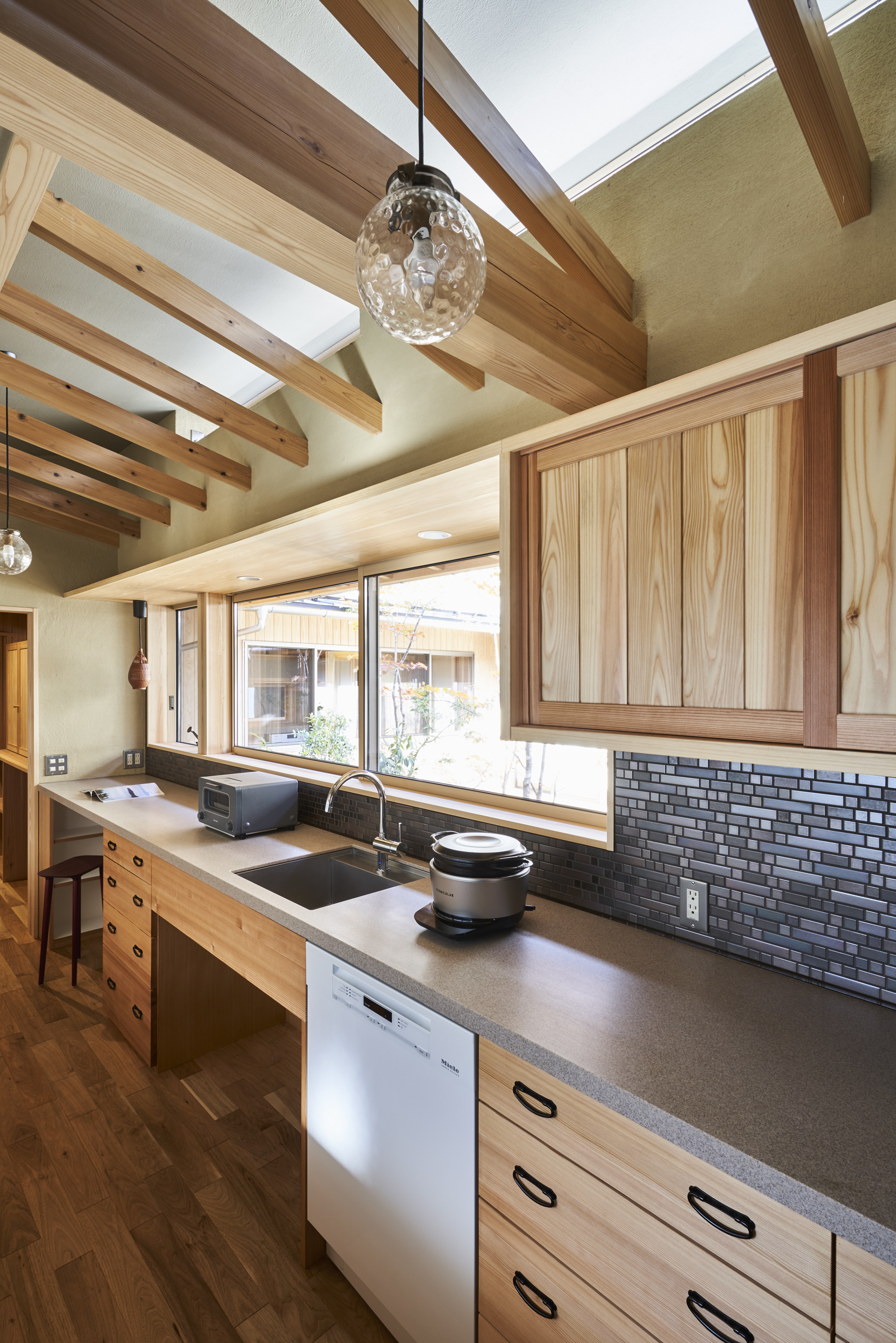 とはいえ中庭に面しており、キッチンからも、庭の景色が楽しめ、光と風が心地よく抜けていきます。