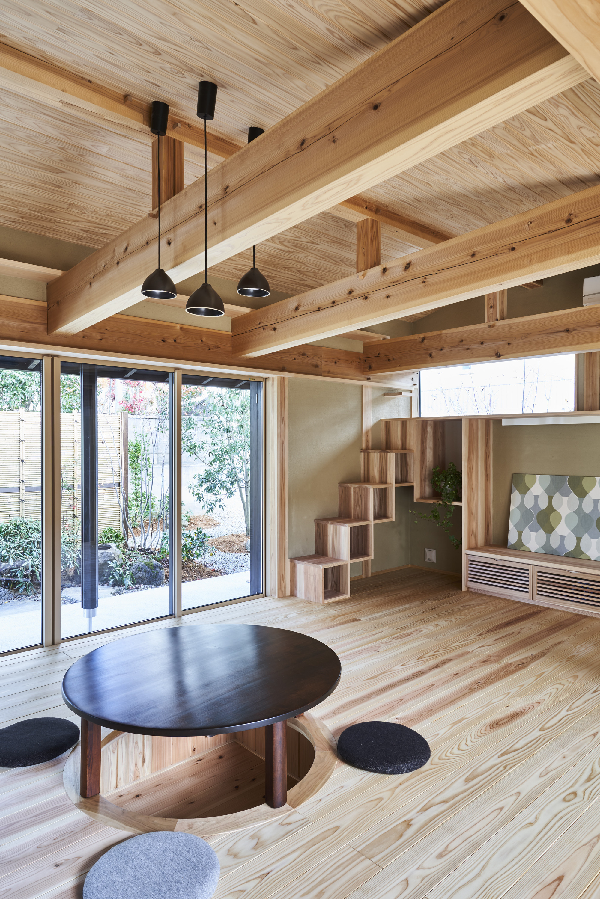 メインリビングは床座がベースですが、リビングは一段高くなっており、