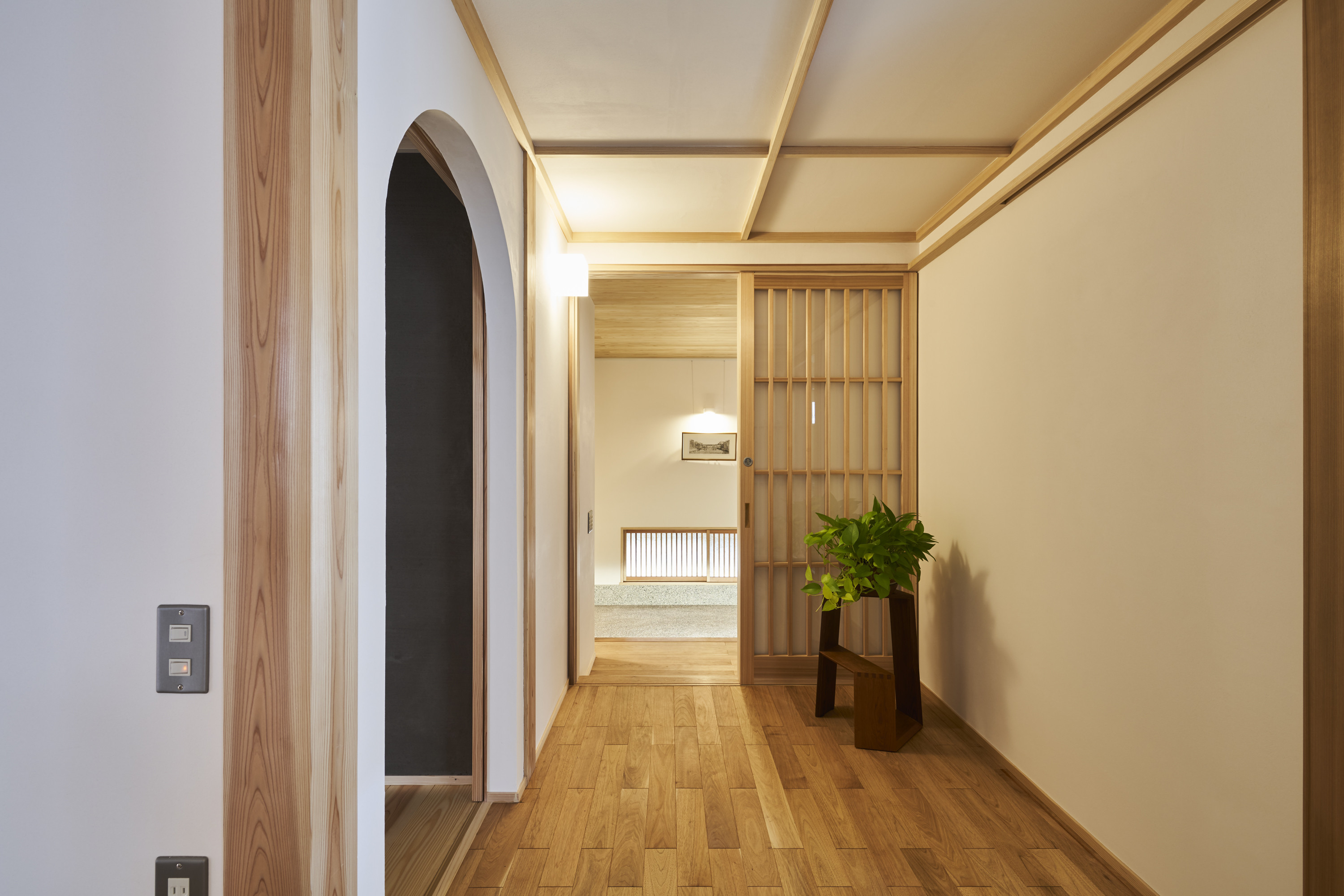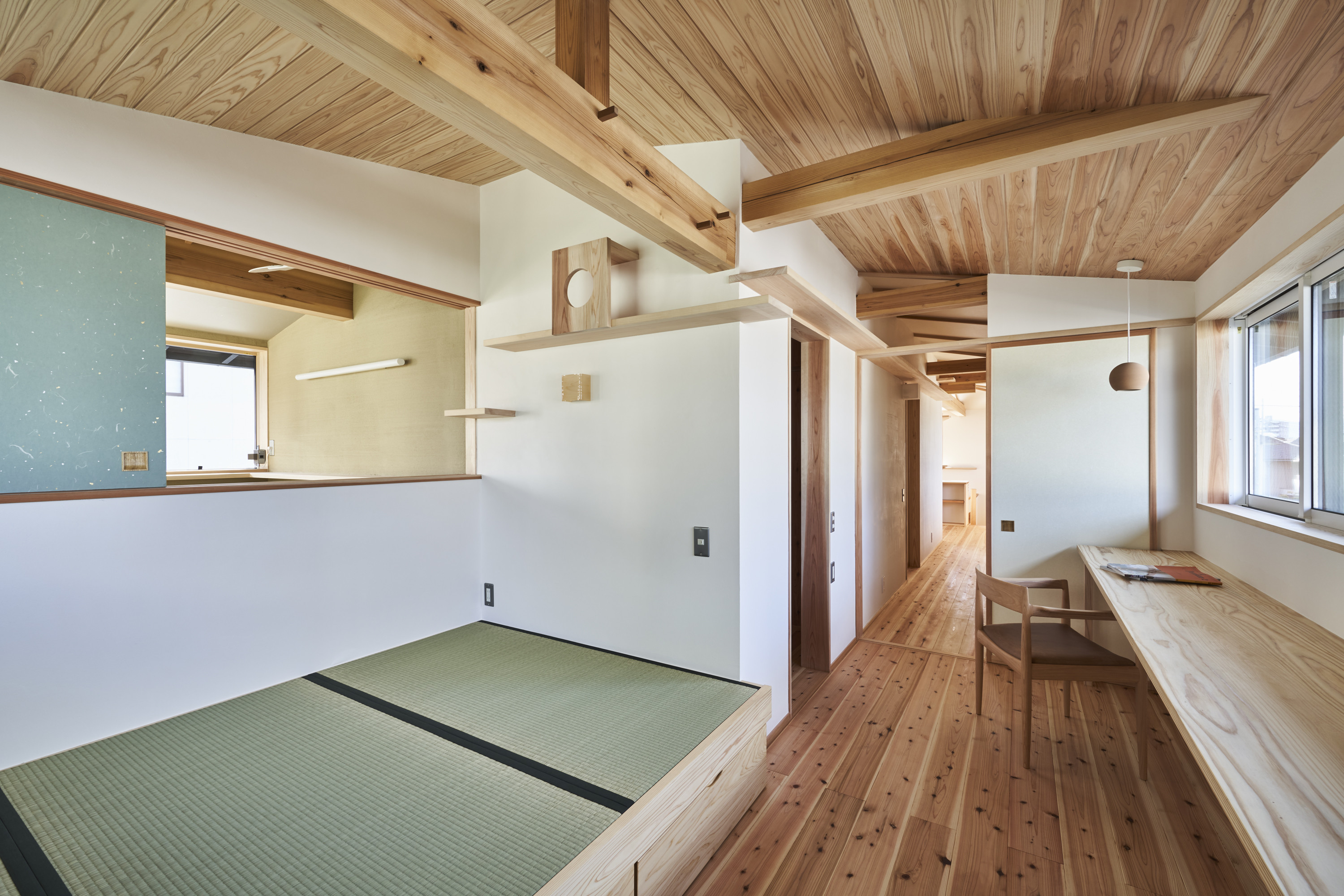 小さい障子を開けることで隣接している二つの空間がつながり、