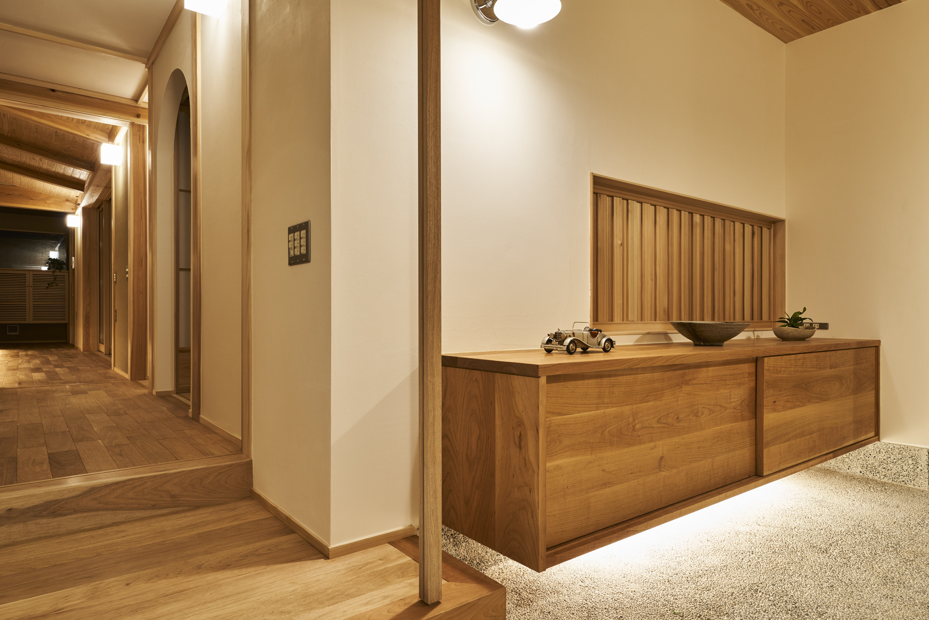 奥には着物用の収納スペースを設け、和の嗜み、気持ちを大切にするお施主さまの思いをくみました。