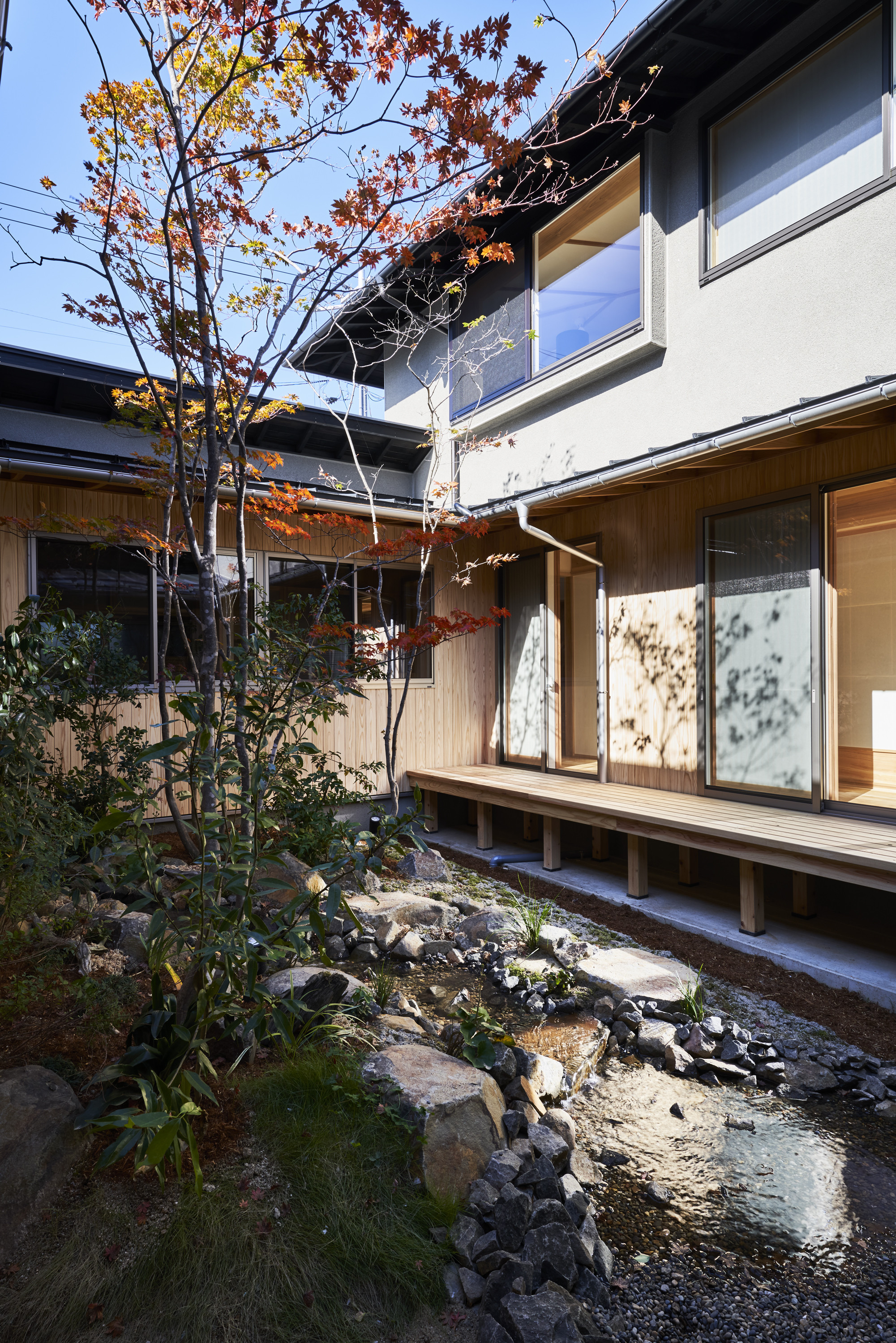 小川が流れ、四季の移ろい感じる、住む人だけの特別な空間が広がります。