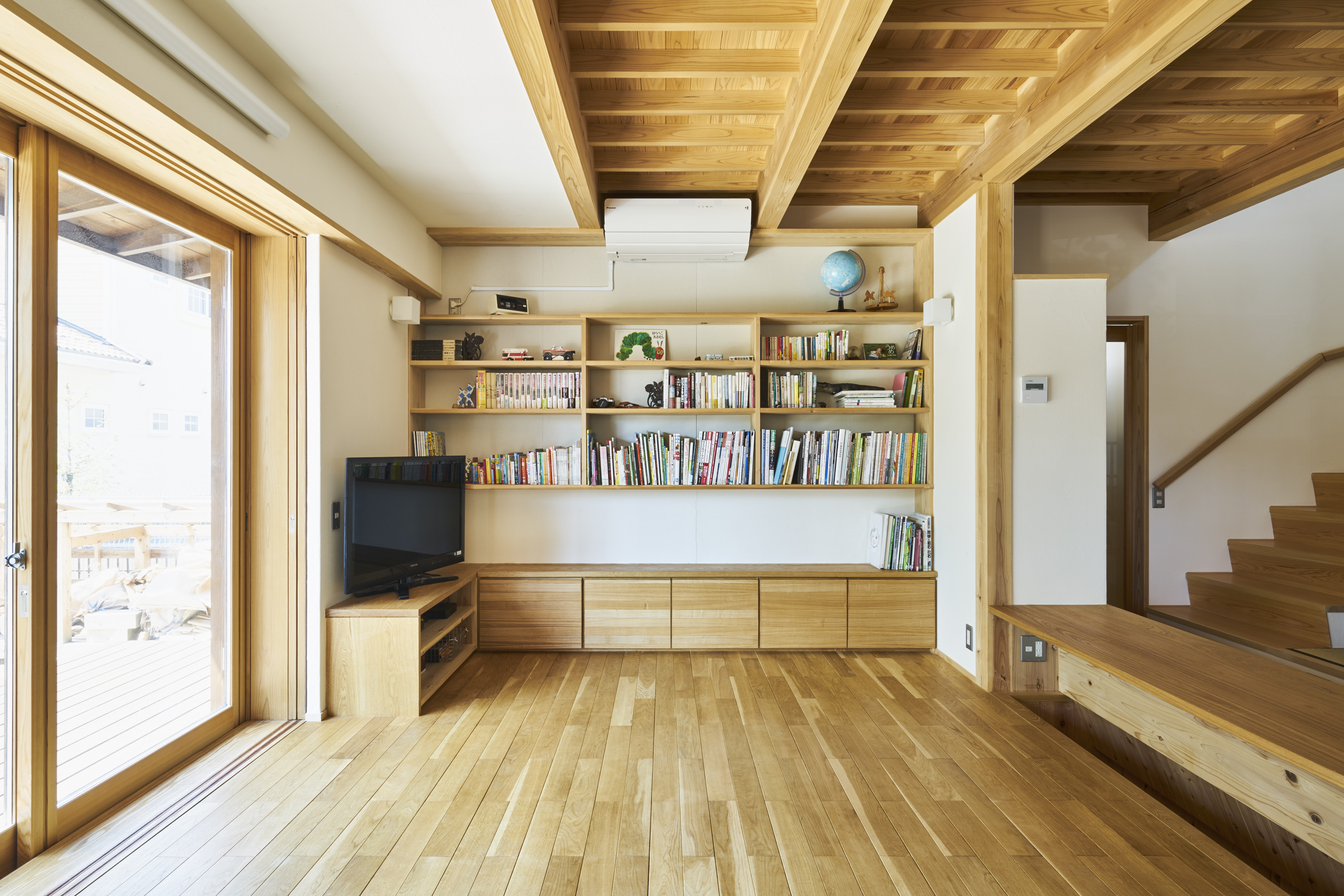 リビングに座った人の目線が合うようにデザインしています。