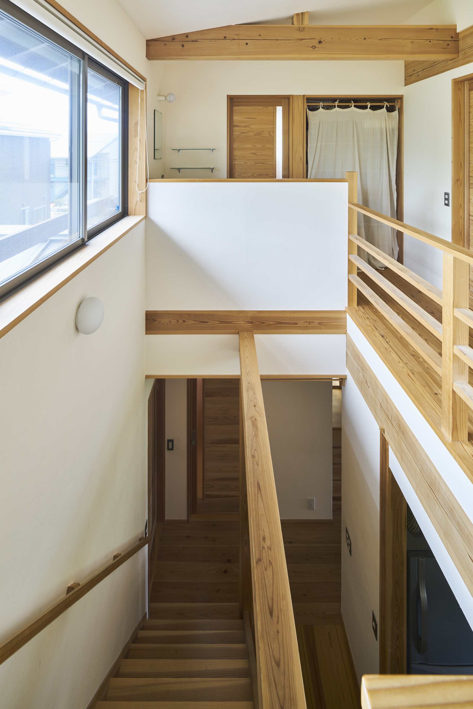 二階につづく階段も、内側は壁をなくし、